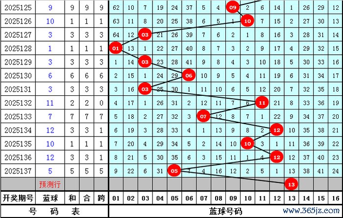 前9期开出7个蓝球号码,蓝球以冷码为主,热码蓝球开出相对较少,还莫得出现的蓝球为:01、02、04、08、09、13、14、15、16,共9个,本期防蓝球为冷码,遗漏值较大,参考蓝球号码13。
