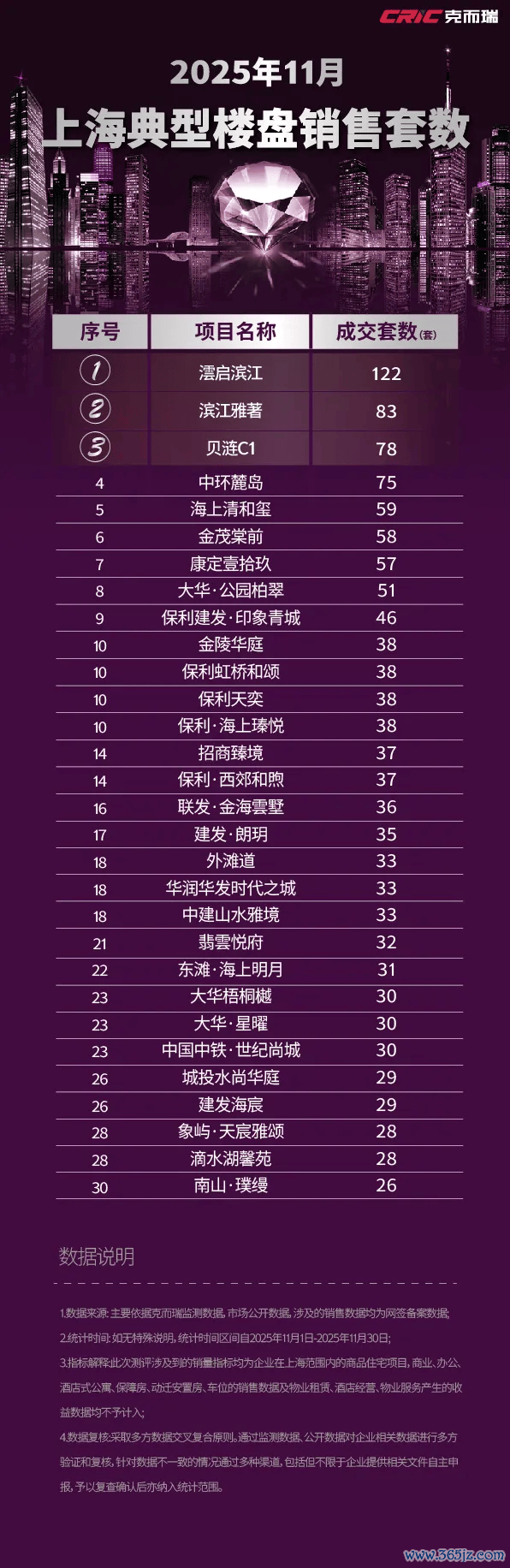 据克而瑞上海数据,2025年11月,上海合计29盘入市,当月成交面积约33.5万㎡,环比下落约15.5%。